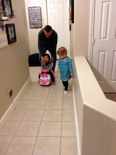 Later that afternoon, Grammy and Tenley came to visit. Tenley gave the babies kisses and had fun running around the halls while we took the babies for a walk: